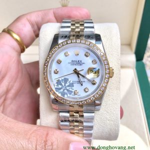 Đồng Hồ Rolex datejust vàng trắng niền hột đá