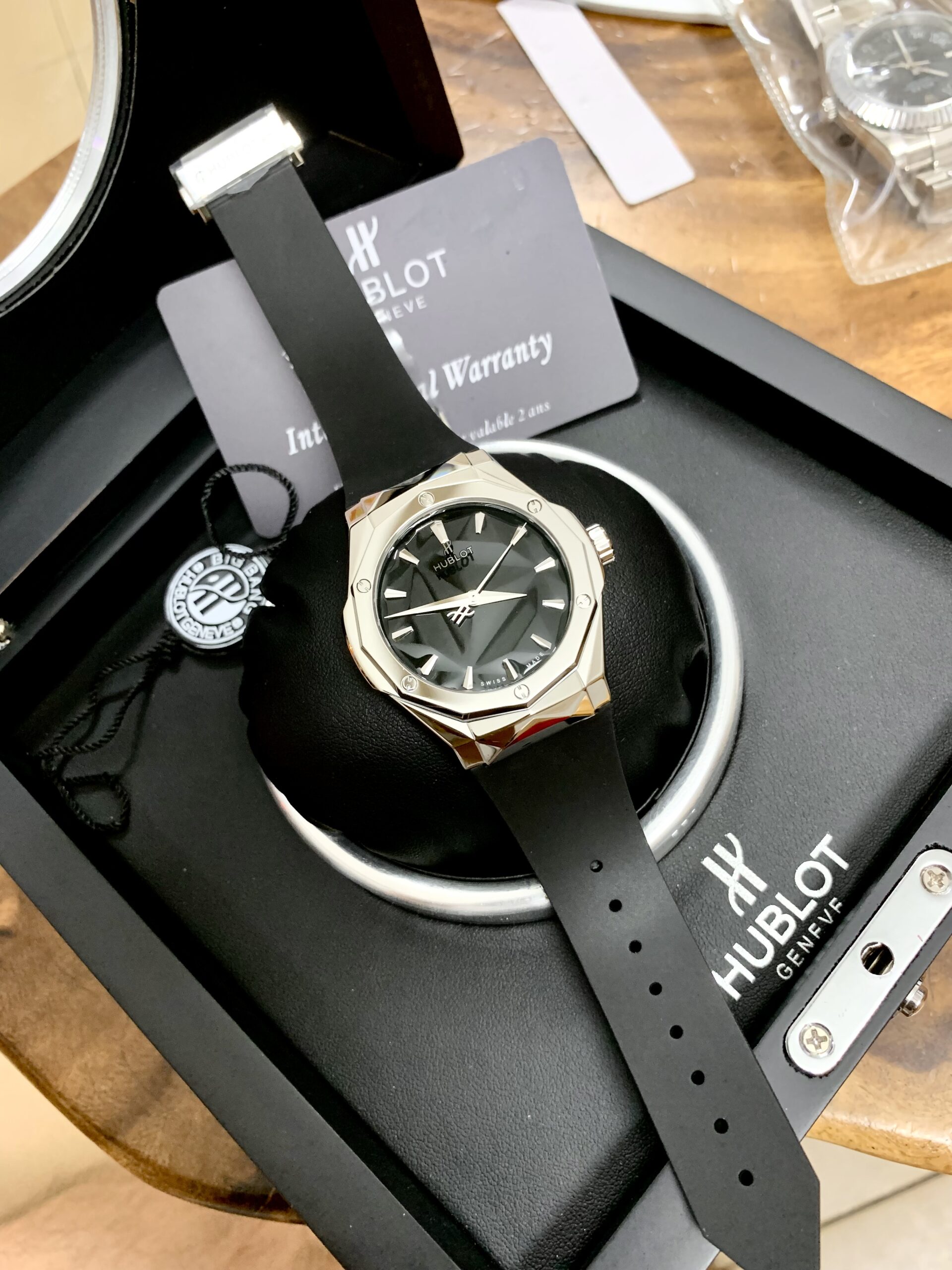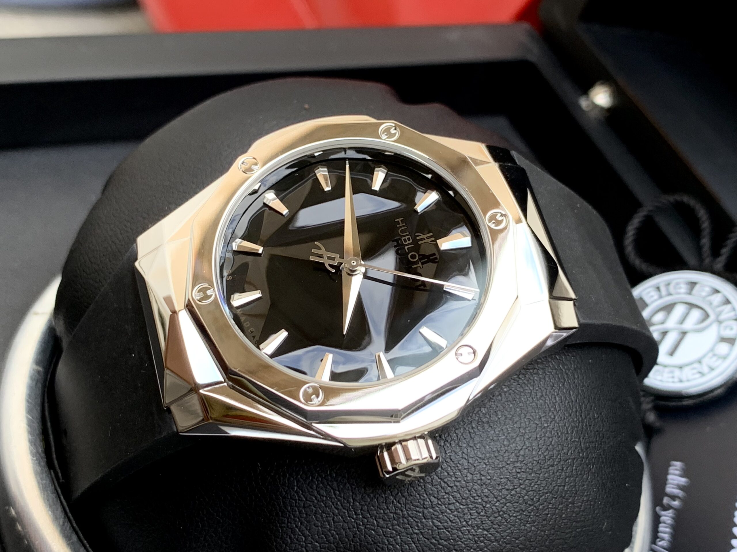 Hublot orlinski bản rep 1:1 nhà máy APS phiên bản hoàn thiện cao gần với bản auto nhất . độ sắc nét đường mượt mà không bị bén cạnh. mặt số in Hublot chìm ngược trên mặt kính